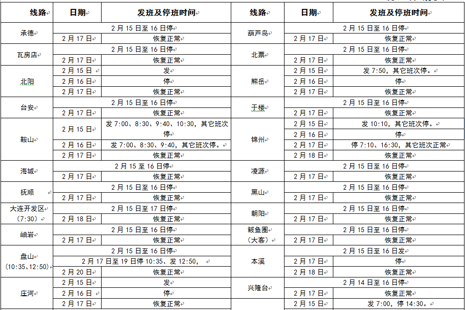 營口交通運(yùn)輸集團(tuán)汽車客運(yùn)站有限公司2018年春節(jié)假期班次安排表